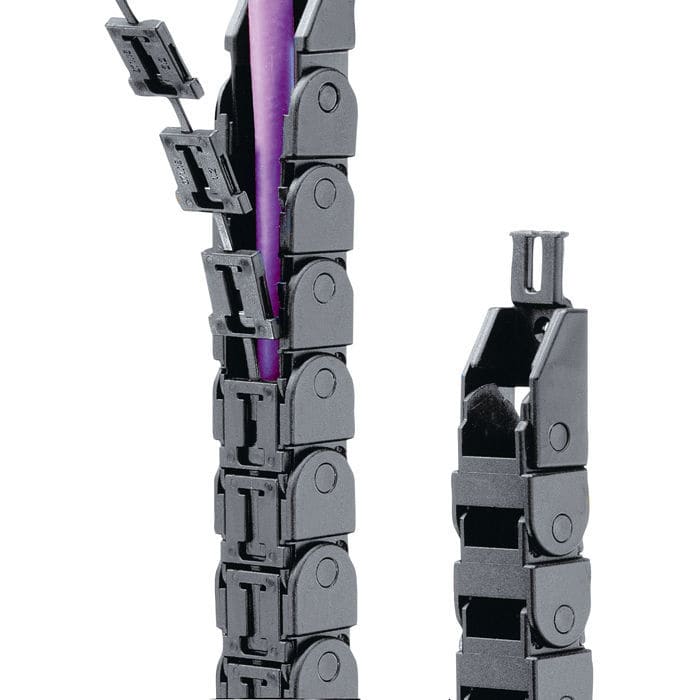 易拆裝式塑料拖鏈不易被腐蝕,拖鏈自身出現(xiàn)故障易修復(fù)處理,拖鏈中線纜出現(xiàn)故障后不需要重新穿線,使用更方便。