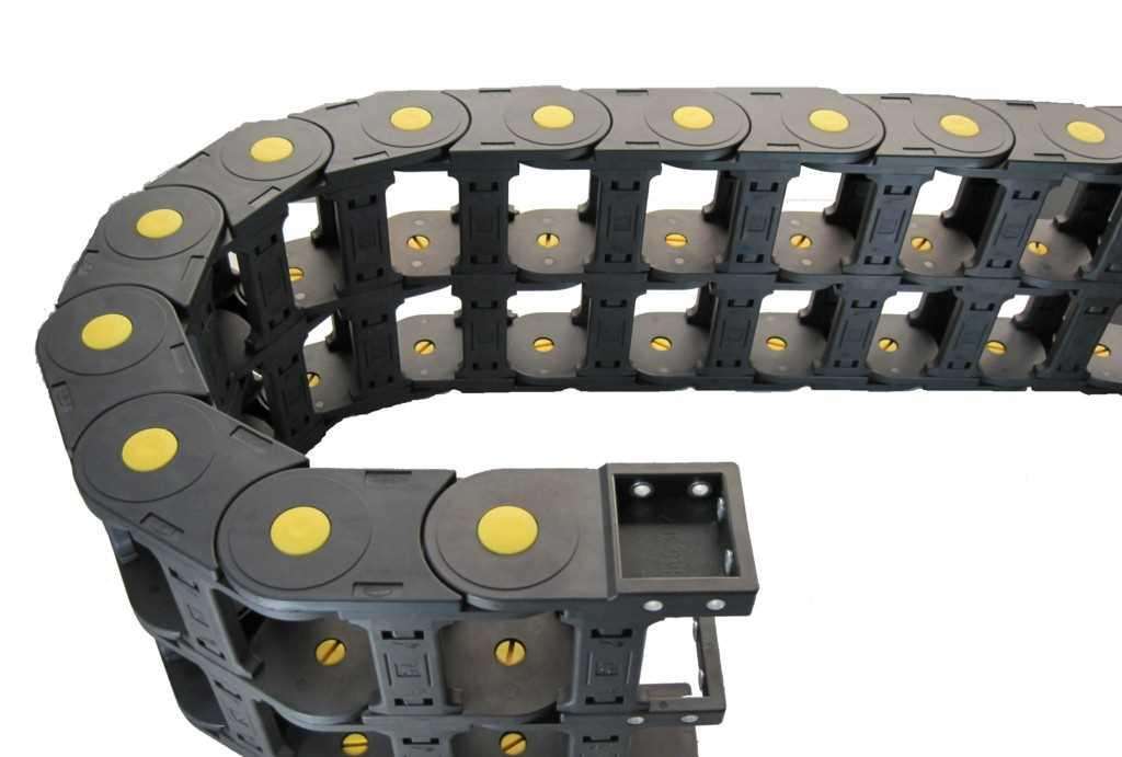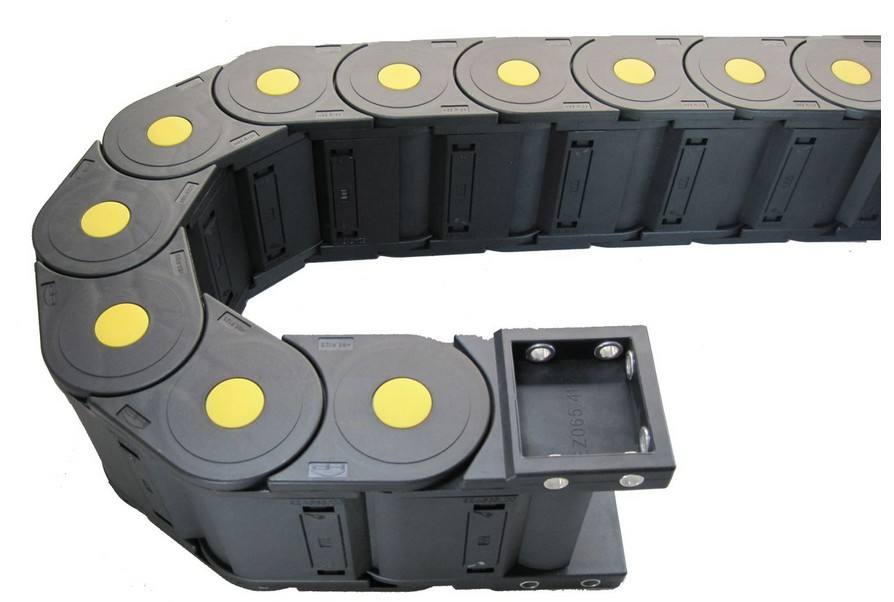 尼龍拖鏈的支撐板是尼龍拖鏈的潤滑問題的主要部件。尼龍拖鏈有三種支撐板的形式。尼龍拖鏈的拖鏈每節(jié)都能打開,便于安裝和維修。運動時噪音低、耐磨、可高速運動。適合于使用在往復運動的場合,能夠對內置的電纜、油管、氣管、水管等起到牽引和保護作用。