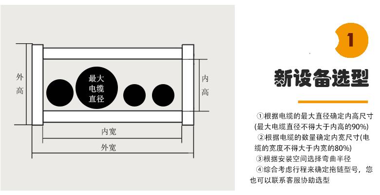 4.綜合考慮行程來(lái)確定拖鏈型號(hào)。