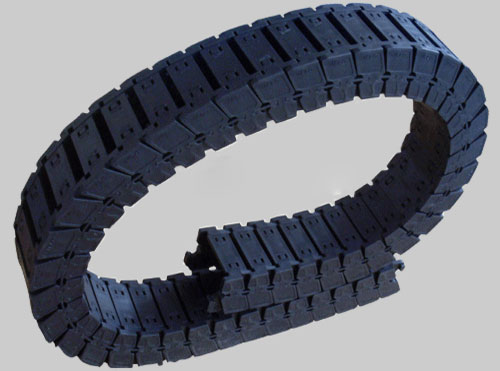 (1)拖鏈外形似坦克鏈,由眾多的單元鏈接組成,鏈接之間轉(zhuǎn)動自如。