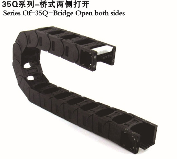 尼龍拖鏈的安裝有兩個步驟,第一:把需要內(nèi)置的電線電纜放入拖鏈內(nèi),第二:把拖鏈固定在設備上面。