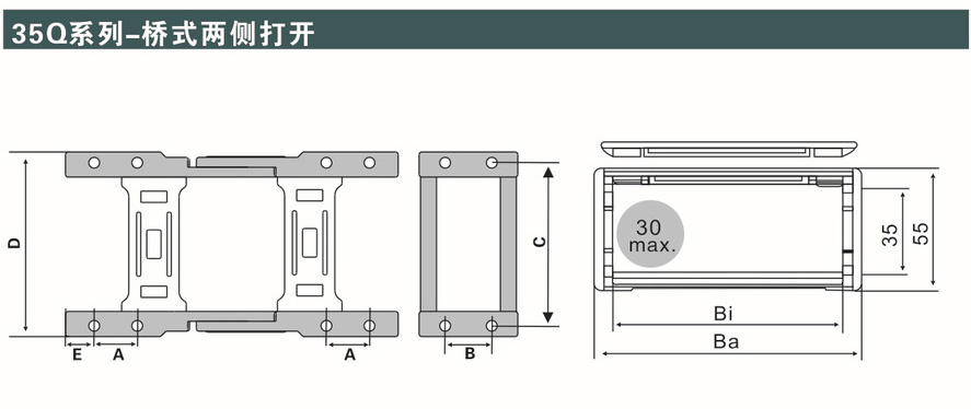 那第一個步驟的話有兩個方法,第一個方法是把需要內(nèi)置的電線電纜從拖鏈一頭直接穿進去,但是這種方法對于電線電纜使用比較長的情況下,使用起來不是特別的方便。特別是有一些電線電纜已經(jīng)安裝好了,或者電線電纜最前端有結(jié)這種情況,使用起來就完全不行。第二個方法是拿一把一字螺絲刀,以45度角斜插入拖鏈上側(cè)或下側(cè)檔片兩端的開啟孔中,用力向上翹,即可把檔片打開,然后把需要內(nèi)置的電線電纜直接平放于此內(nèi)即,再把檔片扣緊即可。