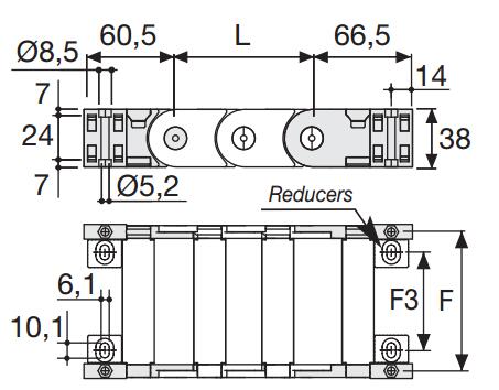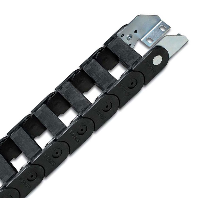 內部高 (D) 25 mm,尼龍拖鏈帶有大的中心抗磨銷軸的單鏈節(jié)結構,同樣抗扭抗拉。可以提供垂直的分隔片。如果使用導向槽,這種拖鏈特別適合長行程應用。